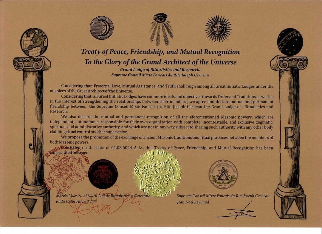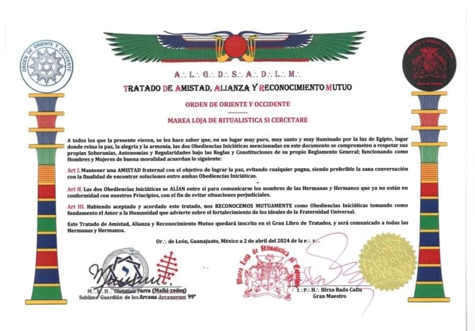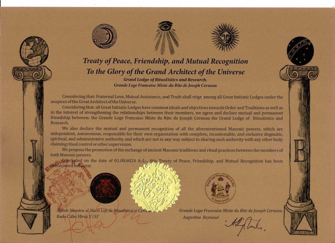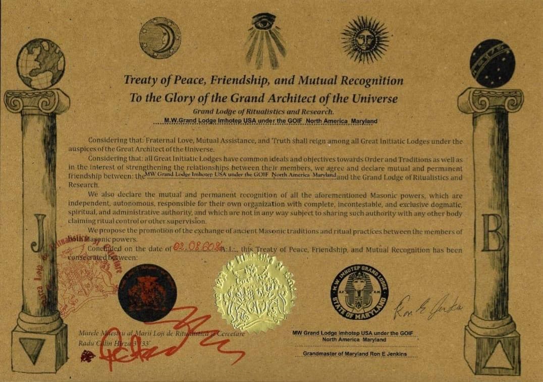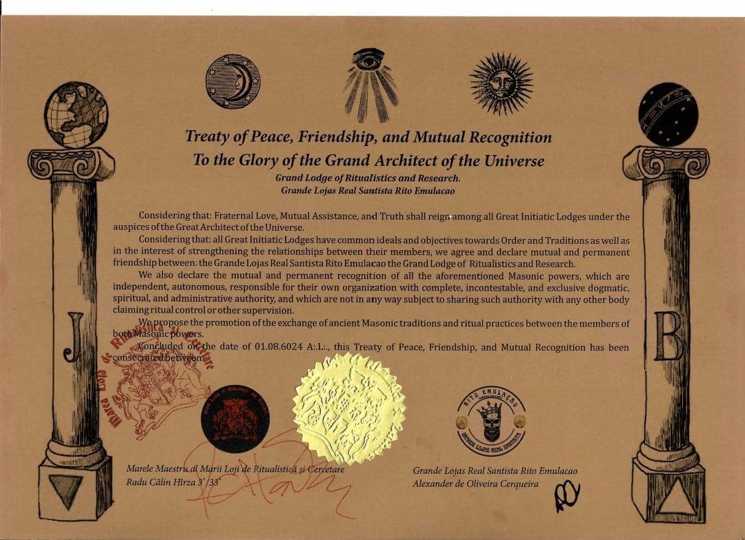 International Relations Of the Grand Lodge of Ritualistics and Research GLRR affiliations and awards below Scrolls Emblems
